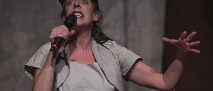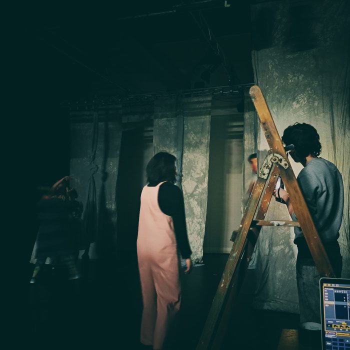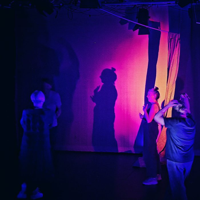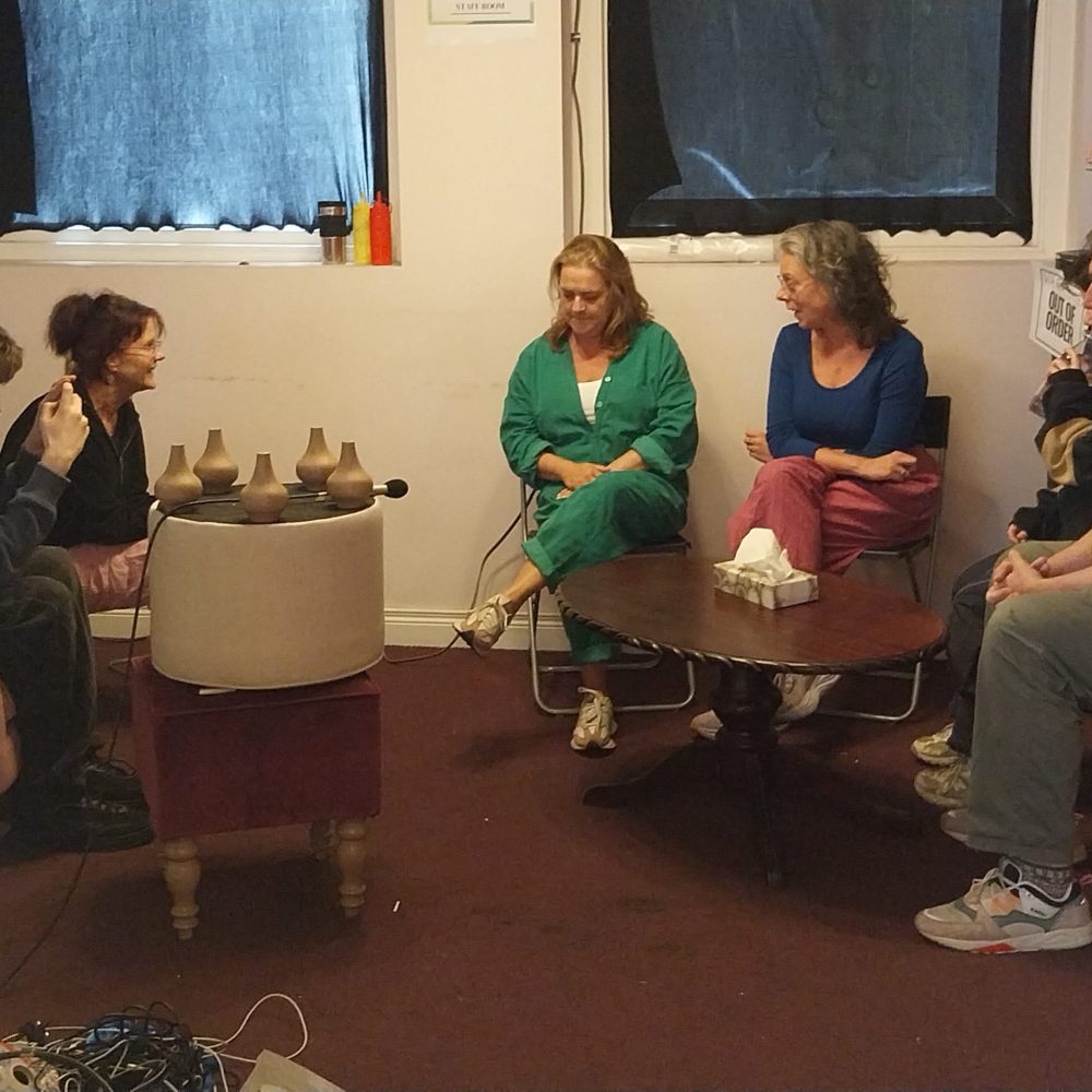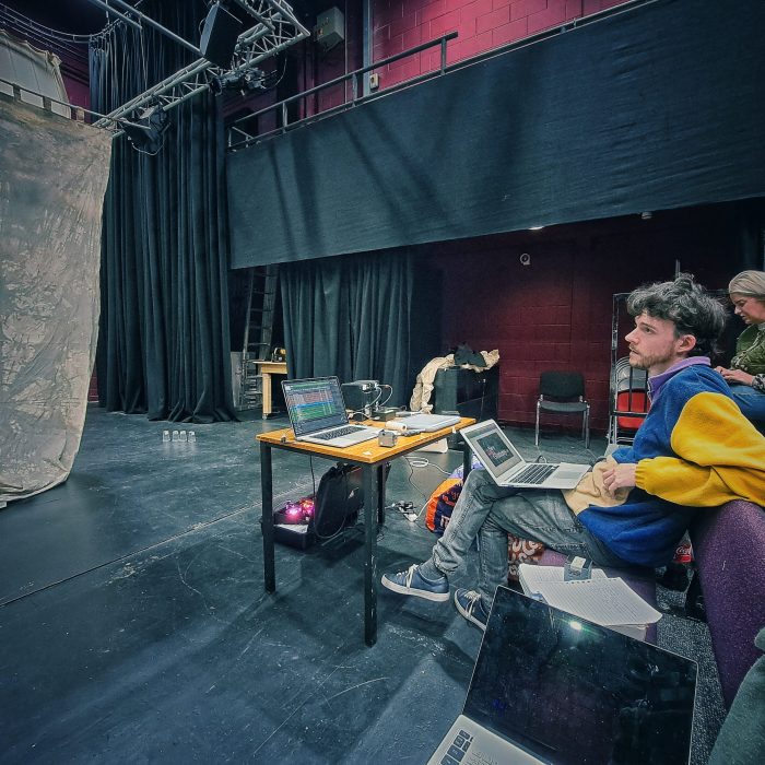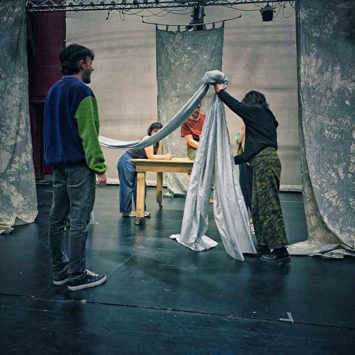 The creative and production team – director Zoë Seaton, producer Crissy O’Donovan, show team with foley and tech operations Jack Kelly & Jenni Nikinmaa