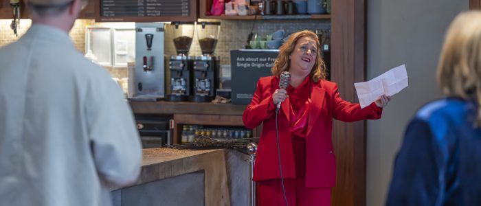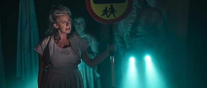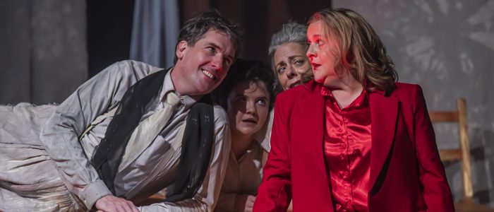 Jo Donnelly as Faith Hughes, the magnificient minister – Chris Robinson in multiple roles, including Lucifer, the coffee connoisseur – Emma Rose Creaner in multiple roles, including Wendy, Faith Hughes’ soulless P.A. – and Claire Lamont in multiple roles, including Ella Tusk and the Crossing Guard
